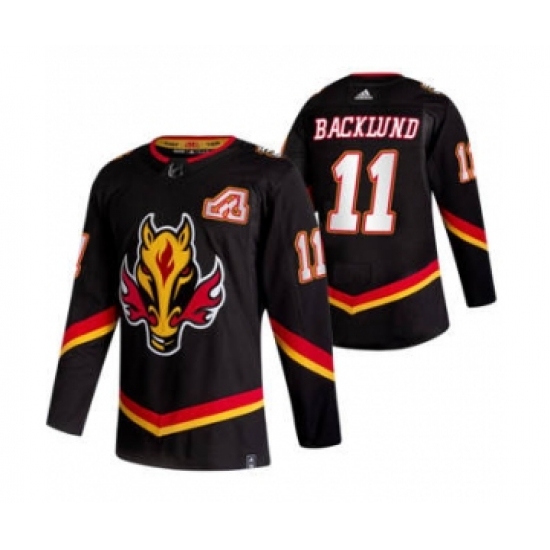 Men's Calgary Flames #11 Mikael Backlund Black 2020-21 Reverse Retro Alternate Hockey Jersey