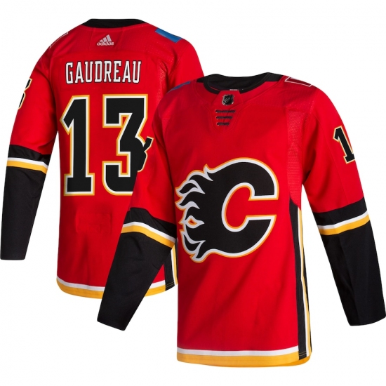 >Men's Calgary Flames #13 Johnny Gaudreau adidas Red 2020-21 Alternate Authentic Player Jersey