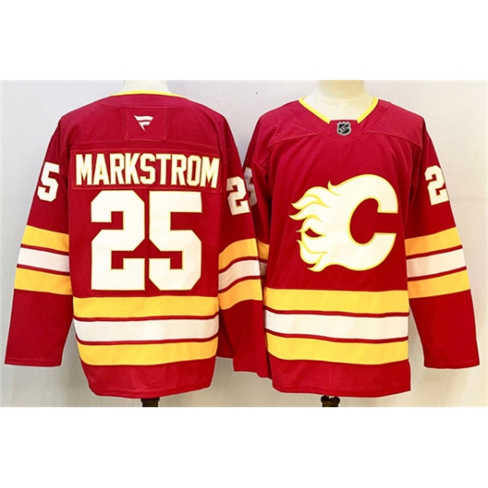 >Men's Calgary Flames #25 Jacob Markstrom Red 2024-25 Home Stitched Hockey Jersey
