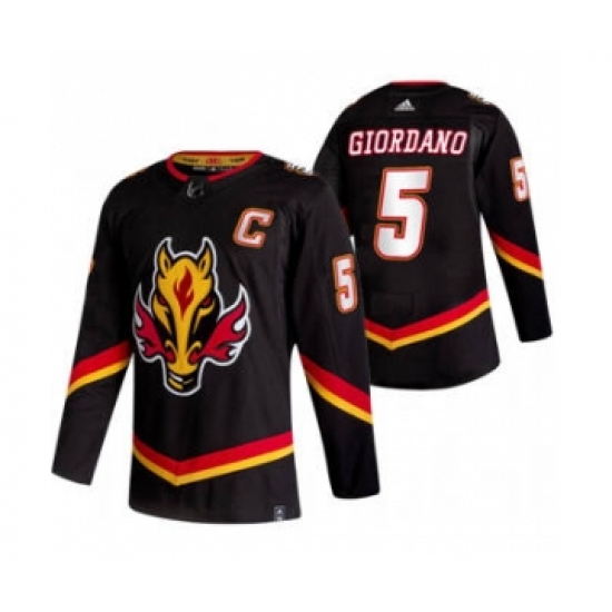 >Men's Calgary Flames #5 Mark Giordano Black 2020-21 Reverse Retro Alternate Hockey Jersey