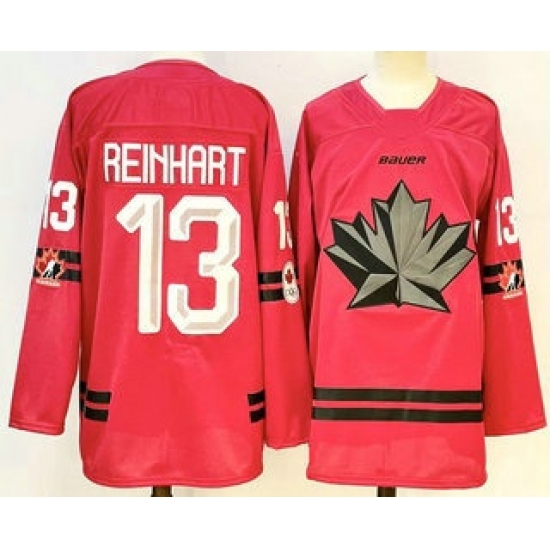 >Men's Canada Hockey #13 Sam Reinhart Red Stitched Jersey