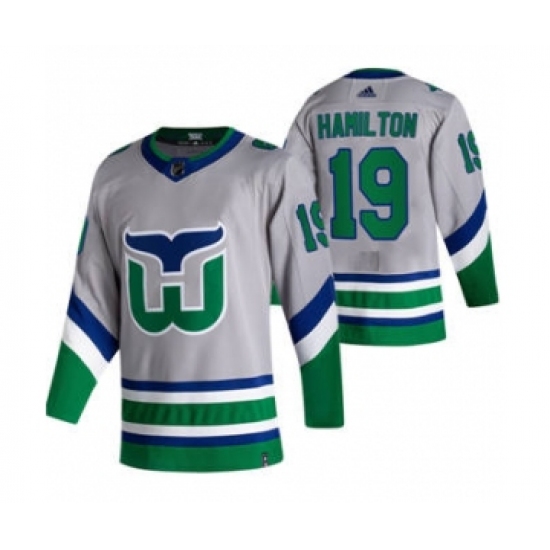 >Men's Carolina Hurricanes #19 Dougie Hamilton Grey 2020-21 Reverse Retro Alternate Hockey Jersey