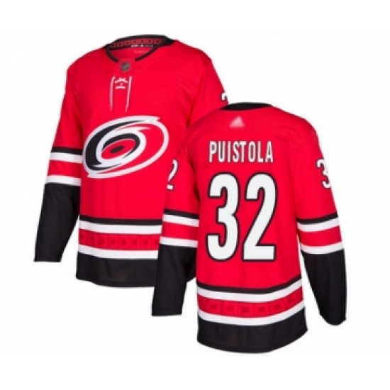 >Men's Carolina Hurricanes #32 Patrik Puistola Authentic Red Home Hockey Jersey