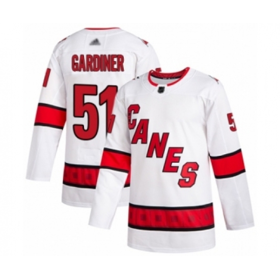 >Men's Carolina Hurricanes #51 Jake Gardiner Authentic White Away Hockey Jersey