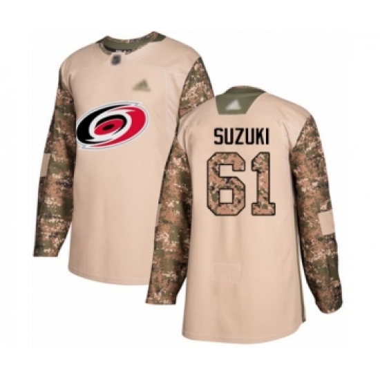 >Men's Carolina Hurricanes #61 Ryan Suzuki Authentic Camo Veterans Day Practice Hockey Jersey