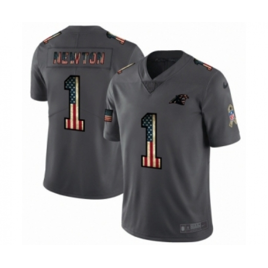 Men's Carolina Panthers #1 Cam Newton Limited Black USA Flag 2019 Salute To Service Football Jersey