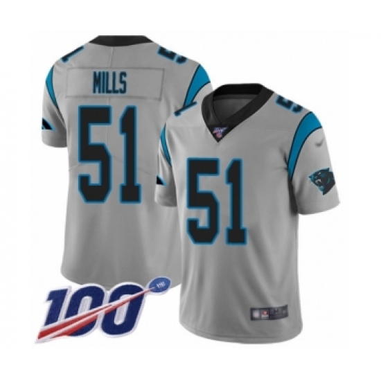 Men's Carolina Panthers #51 Sam Mills Silver Inverted Legend Limited 100th Season Football Jersey