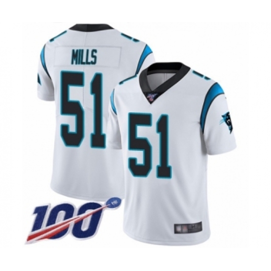 Men's Carolina Panthers #51 Sam Mills White Vapor Untouchable Limited Player 100th Season Football Jersey