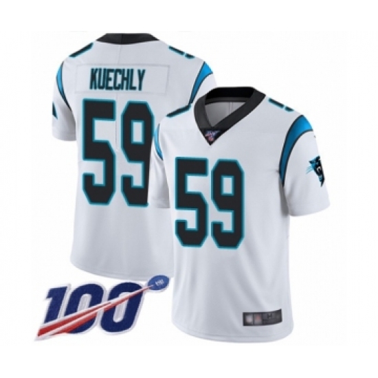 >Men's Carolina Panthers #59 Luke Kuechly White Vapor Untouchable Limited Player 100th Season Football Jersey
