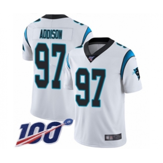 Men's Carolina Panthers #97 Mario Addison White Vapor Untouchable Limited Player 100th Season Football Jersey
