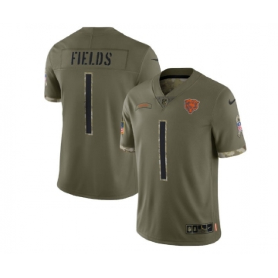 Men's Chicago Bears #1 Justin Fields 2022 Olive Salute To Service Limited Stitched Jersey