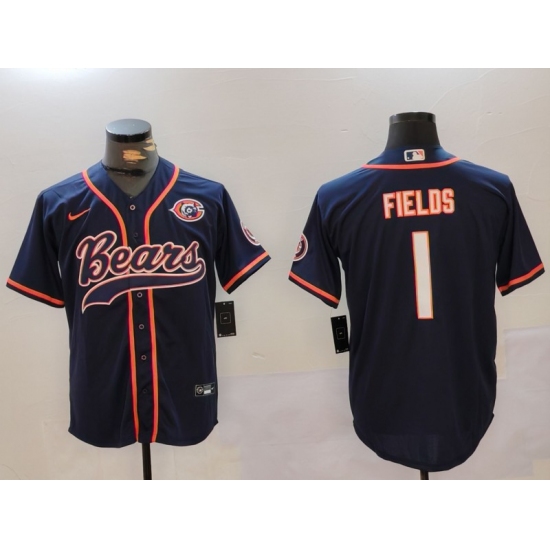 Men's Chicago Bears #1 Justin Fields Navy Throwback With Cool Base Stitched Baseball Jersey