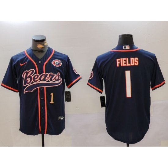 Men's Chicago Bears #1 Justin Fields Navy Throwback With Cool Base Stitched Baseball Jerseys
