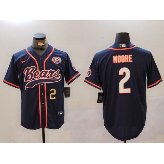 >Men's Chicago Bears #2 DJ Moore Navy Throwback With Cool Base Stitched Baseball Jerseys