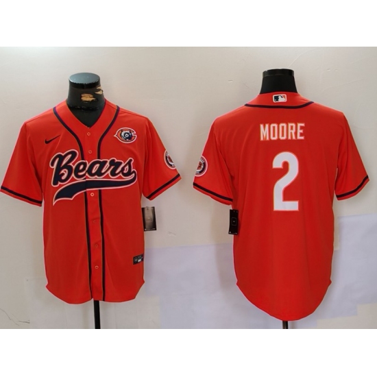 Men's Chicago Bears #2 DJ Moore Orange Throwback With Cool Base Stitched Baseball Jerseys