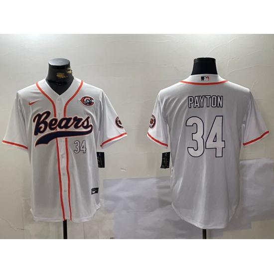 Men's Chicago Bears #34 Walter Payton Number White Throwback With Cool Base Stitched Baseball Jersey
