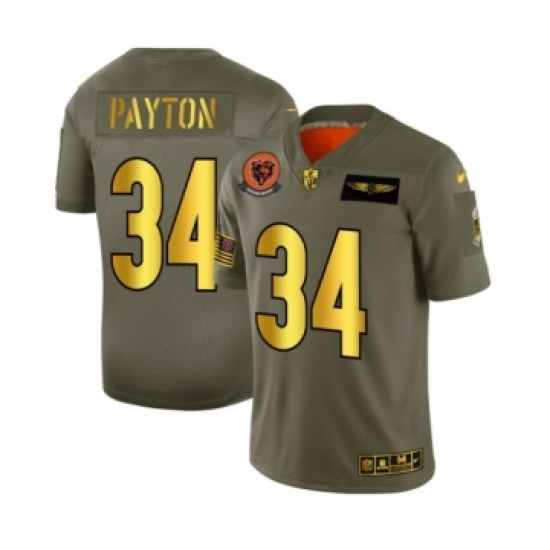 Men's Chicago Bears #34 Walter Payton Olive Gold 2019 Salute to Service Football Jersey