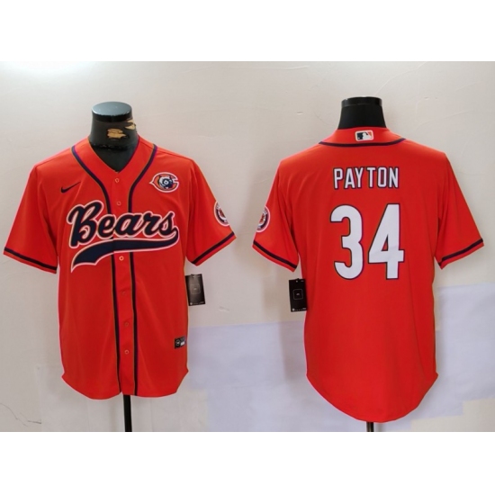 Men's Chicago Bears #34 Walter Payton Orange Throwback With Cool Base Stitched Baseball Jersey