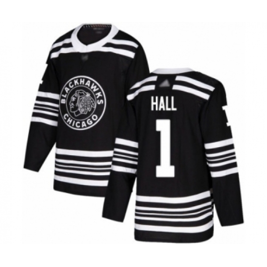 Men's Chicago Blackhawks #1 Glenn Hall Authentic Black Alternate Hockey Jersey