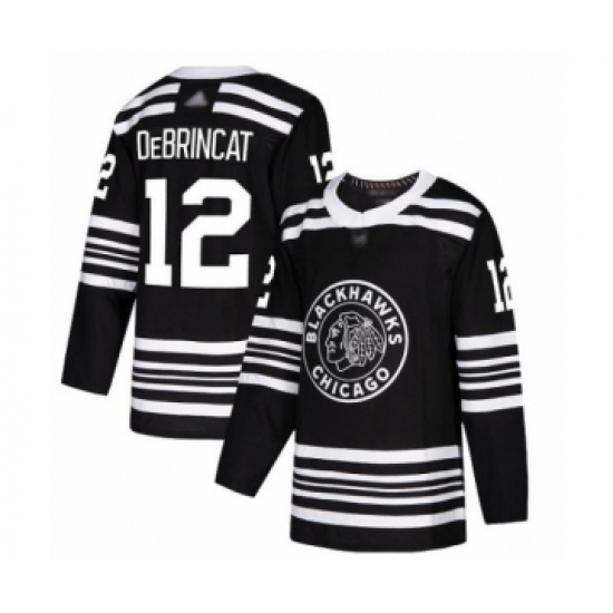 >Men's Chicago Blackhawks #12 Alex DeBrincat Authentic Black Alternate Hockey Jersey