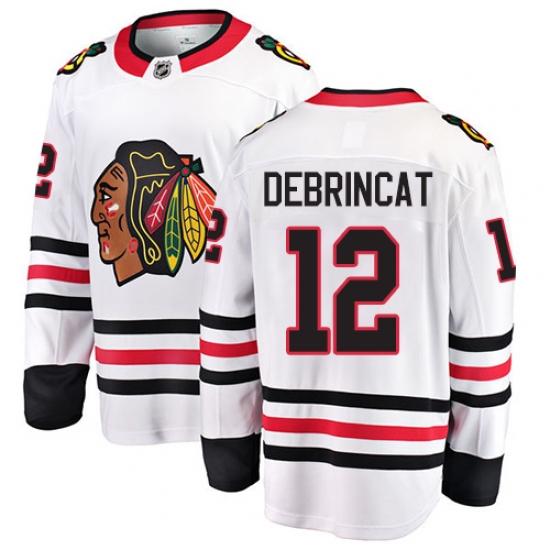 Men's Chicago Blackhawks #12 Alex DeBrincat Fanatics Branded White Away Breakaway NHL Jersey
