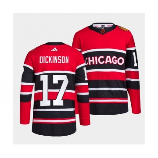 >Men's Chicago Blackhawks #17 Jason Dickinson Red Black 2022 Reverse Retro Stitched Jersey