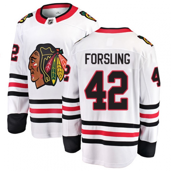 Men's Chicago Blackhawks #42 Gustav Forsling Fanatics Branded White Away Breakaway NHL Jersey