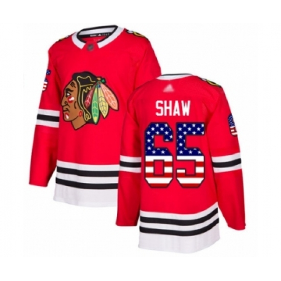 Men's Chicago Blackhawks #65 Andrew Shaw Authentic Red USA Flag Fashion Hockey Jersey