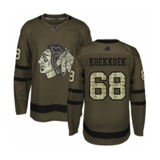 >Men's Chicago Blackhawks #68 Slater Koekkoek Authentic Green Salute to Service Hockey Jersey