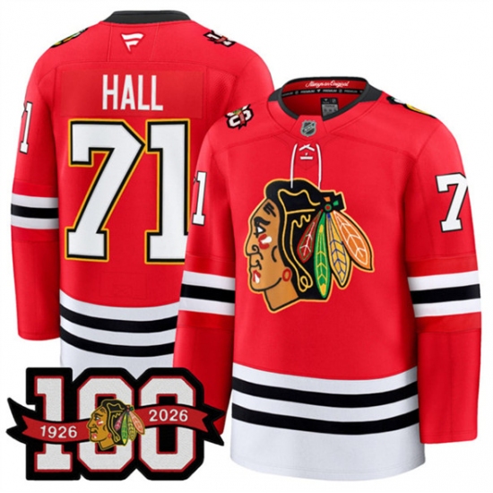 Men's Chicago Blackhawks #71 Taylor Hall Red 2025 Home 100th Anniversary Stitched Hockey Jersey