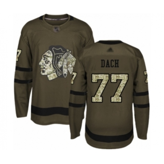>Men's Chicago Blackhawks #77 Kirby Dach Authentic Green Salute to Service Hockey Jersey