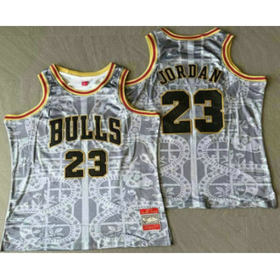 >Men's Chicago Bulls #23 Michael Jordan Grey Snakeskin Hardwood AU Throwback Jersey