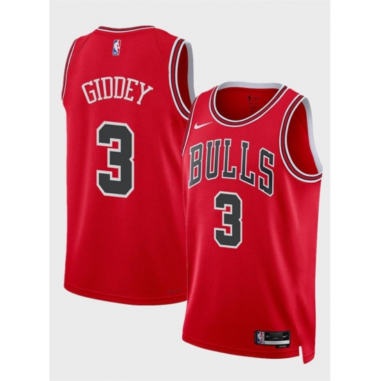 Men's Chicago Bulls #3 Josh Giddey Red Icon Edition Stitched Basketball Jersey
