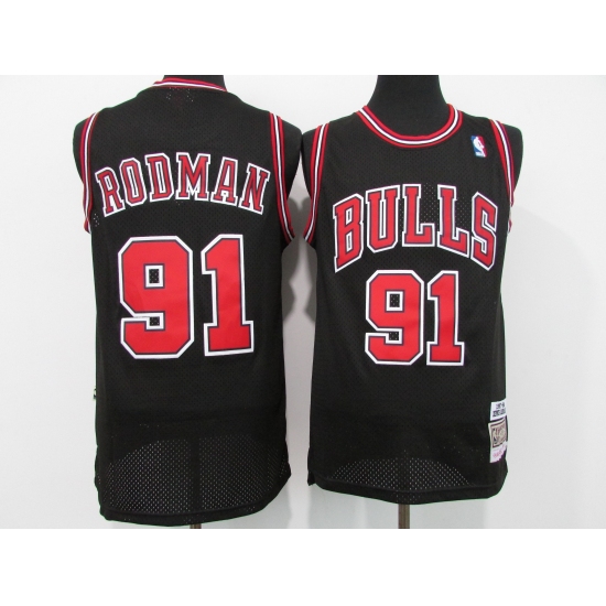 Mens Chicago Bulls #91 Dennis Rodman Number Black With Cool Base Stitched Baseball Jersey
