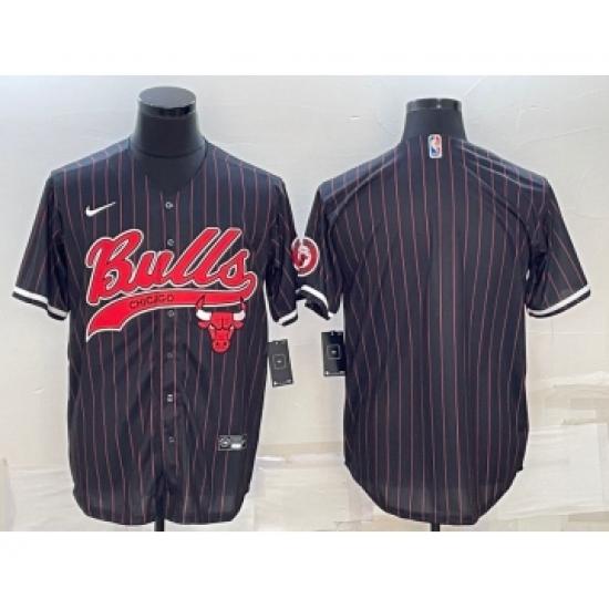 >Men's Chicago Bulls Blank Black Pinstripe With Patch Cool Base Stitched Baseball Jersey