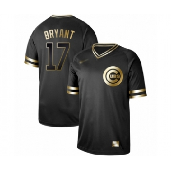 >Men's Chicago Cubs #17 Kris Bryant Authentic Black Gold Fashion Baseball Jersey