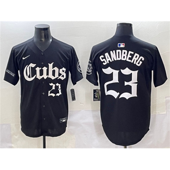 >Men's Chicago Cubs #23 Ryne Sandberg Black 'Gothic North Side Edition' Vapor Premier Limited Stitched Baseball Jersey