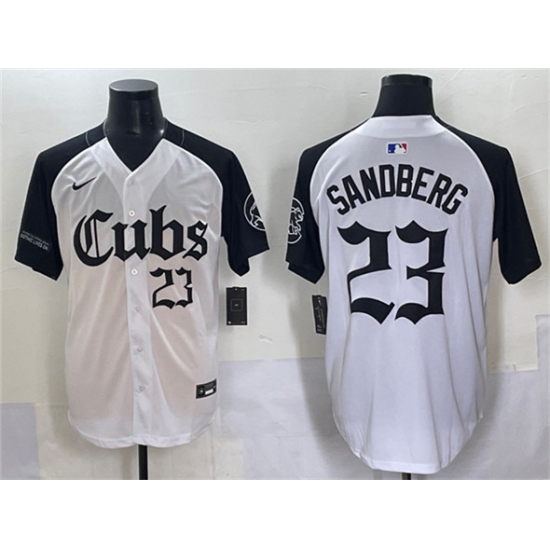 >Men's Chicago Cubs #23 Ryne Sandberg White Black 'Gothic North Side Edition' Vapor Premier Limited Stitched Baseball Jersey
