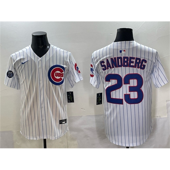 Men's Chicago Cubs #23 Ryne Sandberg White Pinstripe 'Ryne Sandberg Tribute' Vapor Limited V2 Stitched Baseball Jersey