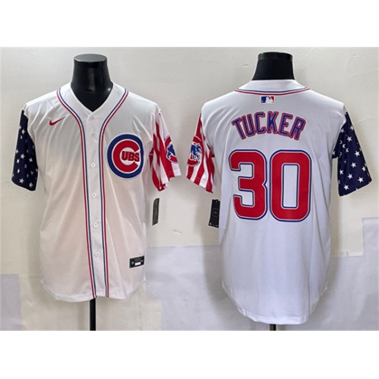 >Men's Chicago Cubs #30 Kyle Tucker White 2025 Independence Day Vapor Premier Limited Stitched Baseball Jersey