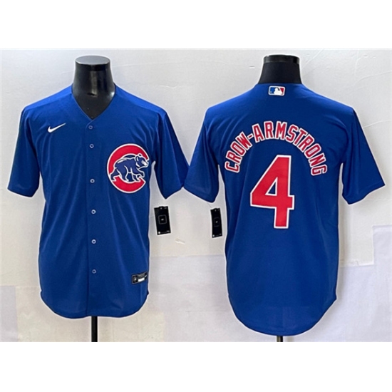 >Men's Chicago Cubs #4 Pete Crow-Armstrong Royal Cool Base Stitched Baseball Jersey