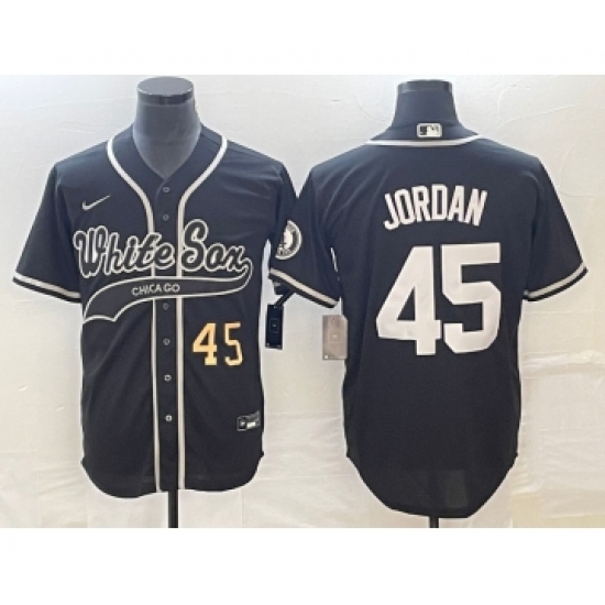 Men's Chicago White Sox #45 Michael Jordan Number Black Cool Base Stitched Baseball Jersey