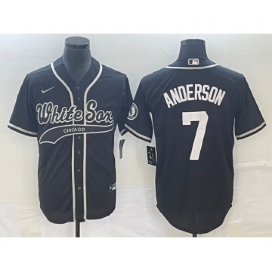 >Men's Chicago White Sox #7 Tim Anderson Black Cool Base Stitched Baseball Jersey 1