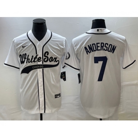>Men's Chicago White Sox #7 Tim Anderson White Cool Base Stitched Baseball Jersey1