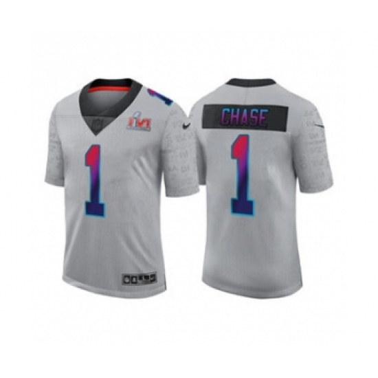 Men's Cincinnati Bengals #1 Ja'Marr Chase 2022 Gray Super Bowl LVI Limited Stitched Jersey
