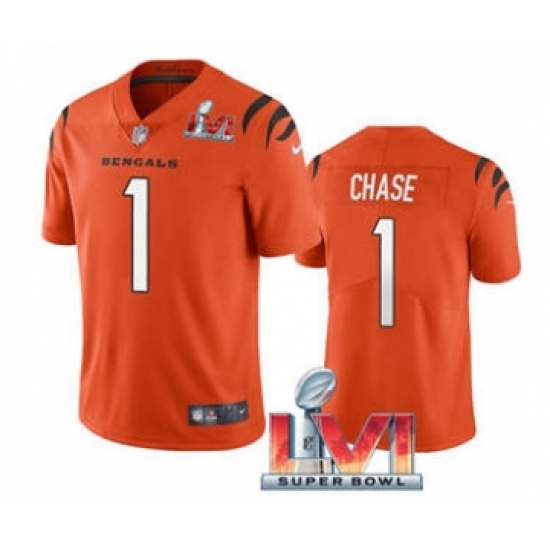 Men's Cincinnati Bengals #1 Ja'Marr Chase Orange 2022 Super Bowl LVI Vapor Limited Stitched Jersey