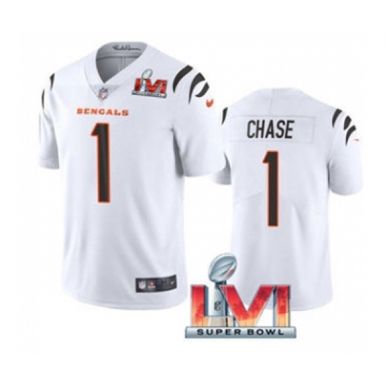 Men's Cincinnati Bengals #1 Ja'Marr Chase White 2022 Super Bowl LVI Vapor Limited Stitched Jersey