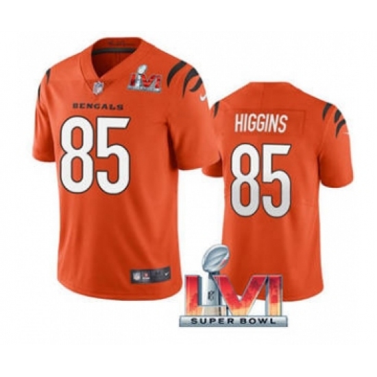 >Men's Cincinnati Bengals #85 Tee Higgins Orange 2022 Super Bowl LVI Vapor Limited Stitched Jersey