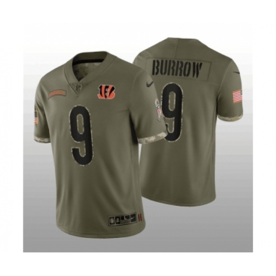 Men's Cincinnati Bengals #9 Joe Burrow 2022 Olive Salute To Service Limited Stitched Jersey