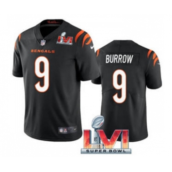 Men's Cincinnati Bengals #9 Joe Burrow Black 2022 Super Bowl LVI Vapor Limited Stitched Jersey